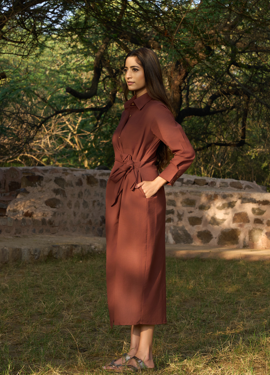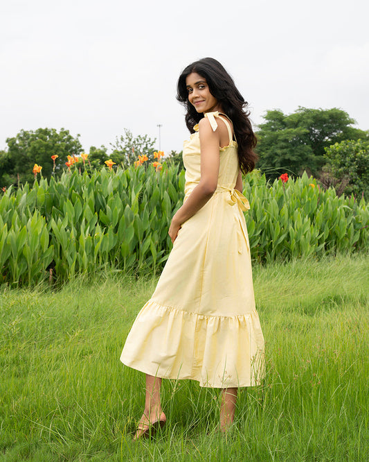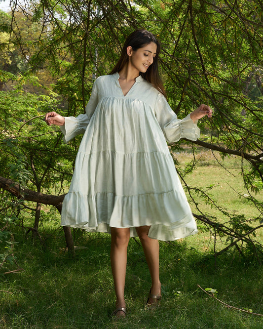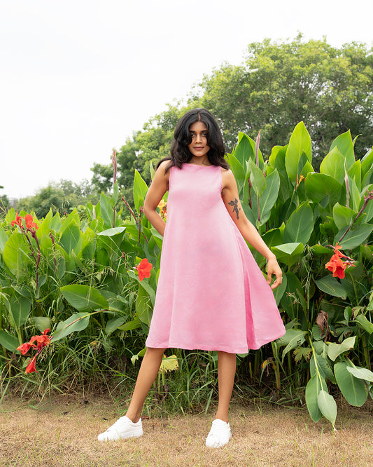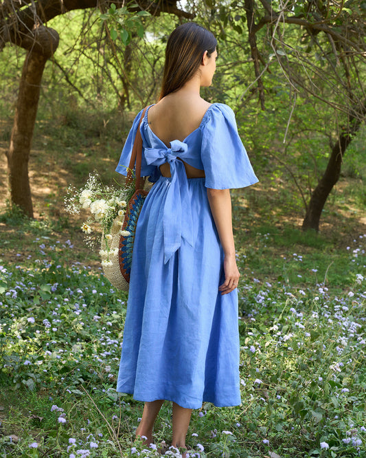 Aimee 100% Linen Drop-Waist Gathered Midi Dress