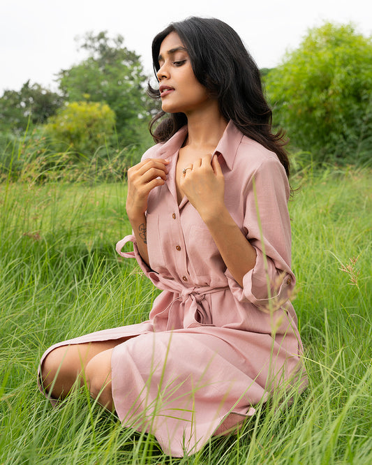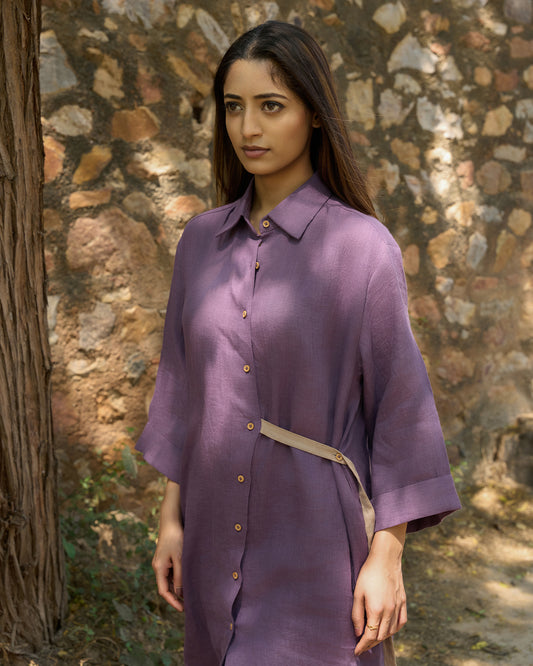 Breanna 100% Linen Long Relaxed fit Tunic with Button Twist